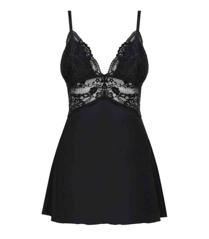 Dans un tissu doux et soyeux de la babydoll caresse délicatement la peau, créant une sensation luxueuse au toucher. La coupe légèrement évasée flotte avec grâce autour de votre silhouette, et couvre juste ce qu'il faut. Lees détails en dentelle soulignent la poitrine et ajoutent une touche romantique et suggestive. Le décolleté plongeant met en valeur la poitrine et soulignz la féminité avec une élégance audacieuse.